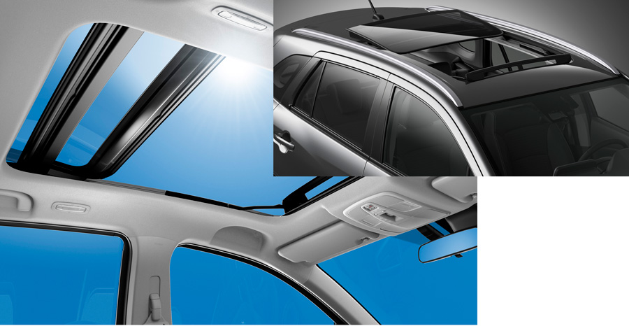 Двойные раздвижные стеклянные панели образуют очень широкий проем для панорамного люка, поэтому вид на небо доступен с любого места в автомобиле.