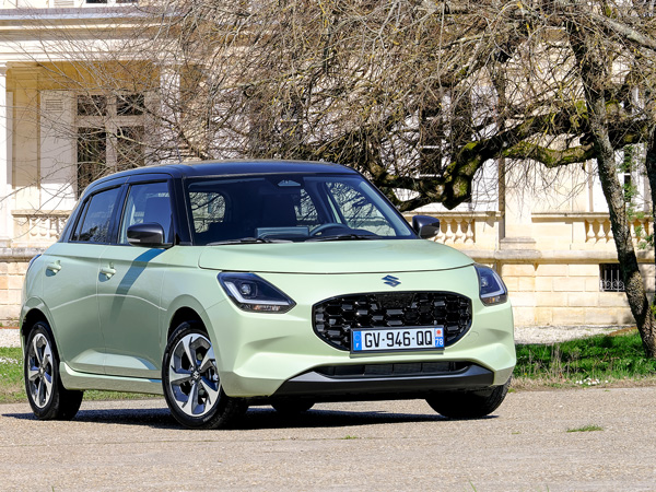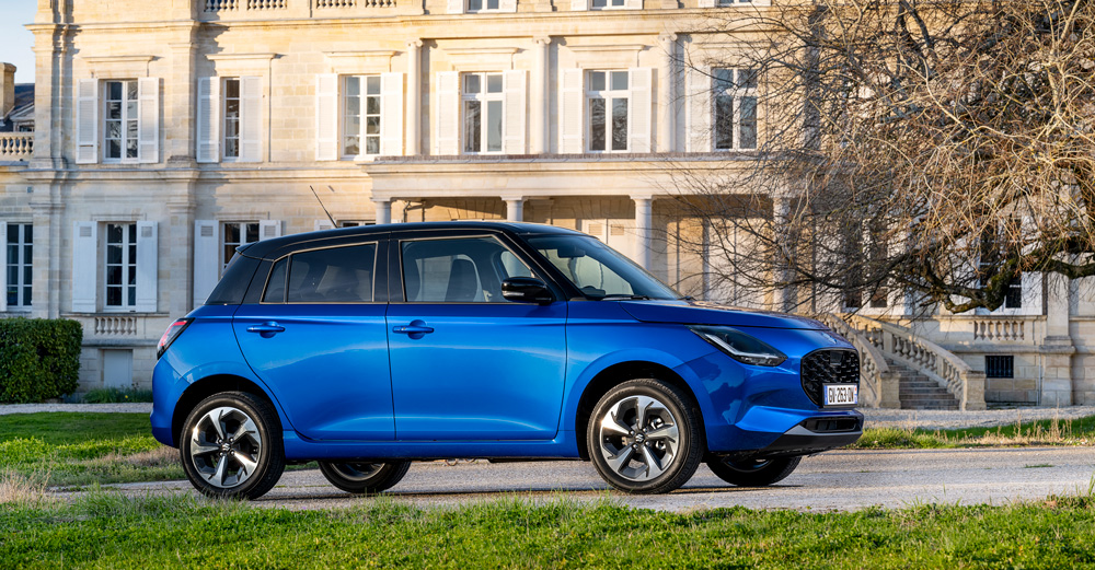 Черные стойки A и B создают впечатление «парящей» крыши. Яркая боковая линия делает автомобиль безошибочно узнаваемым: типичный Swift, просто другой.
